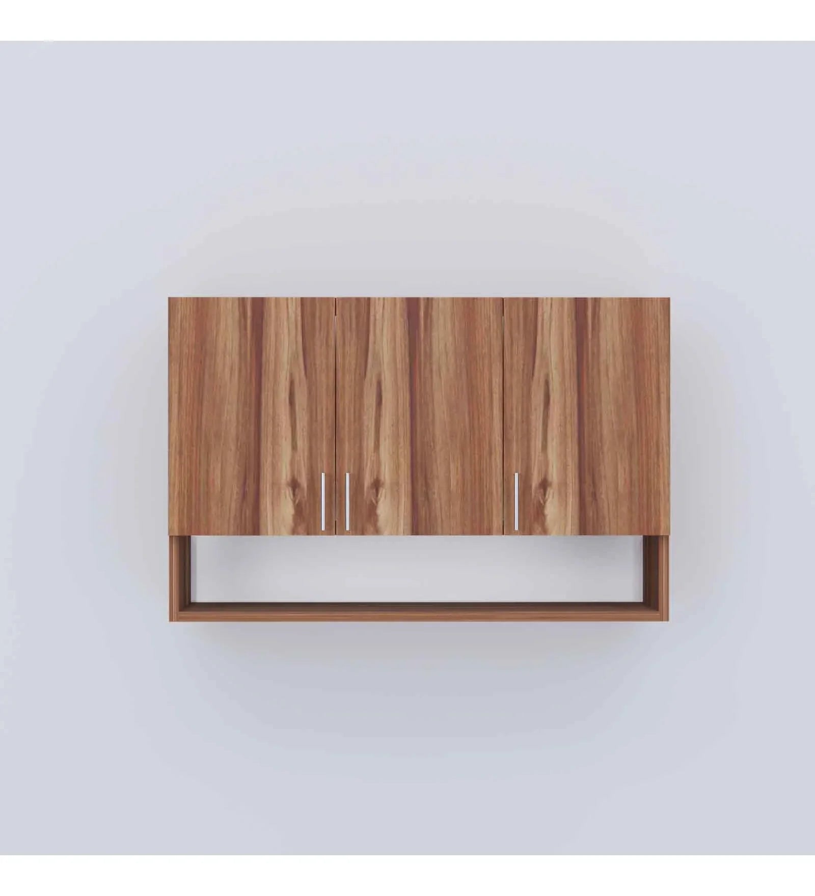 3 Doors Modular Wall Mounted Kitchen Cabinet with Organizer Shelf in Aisan Walnut Finish