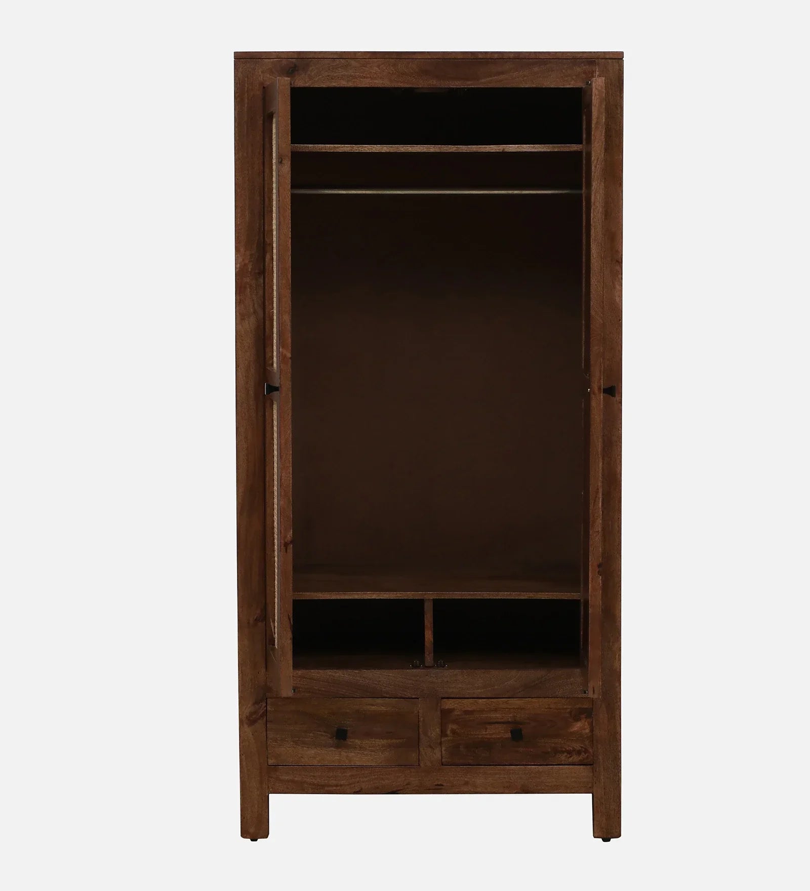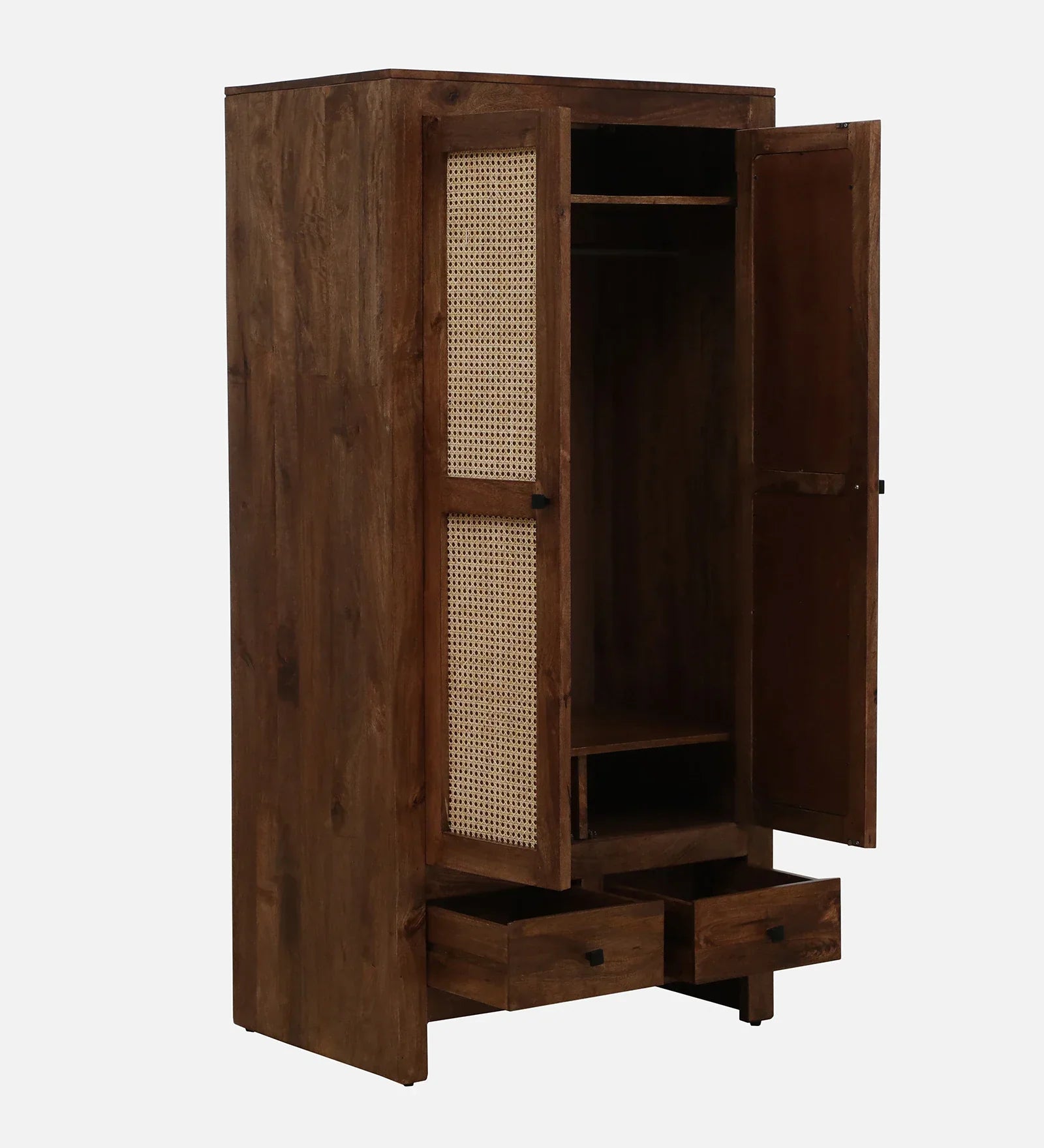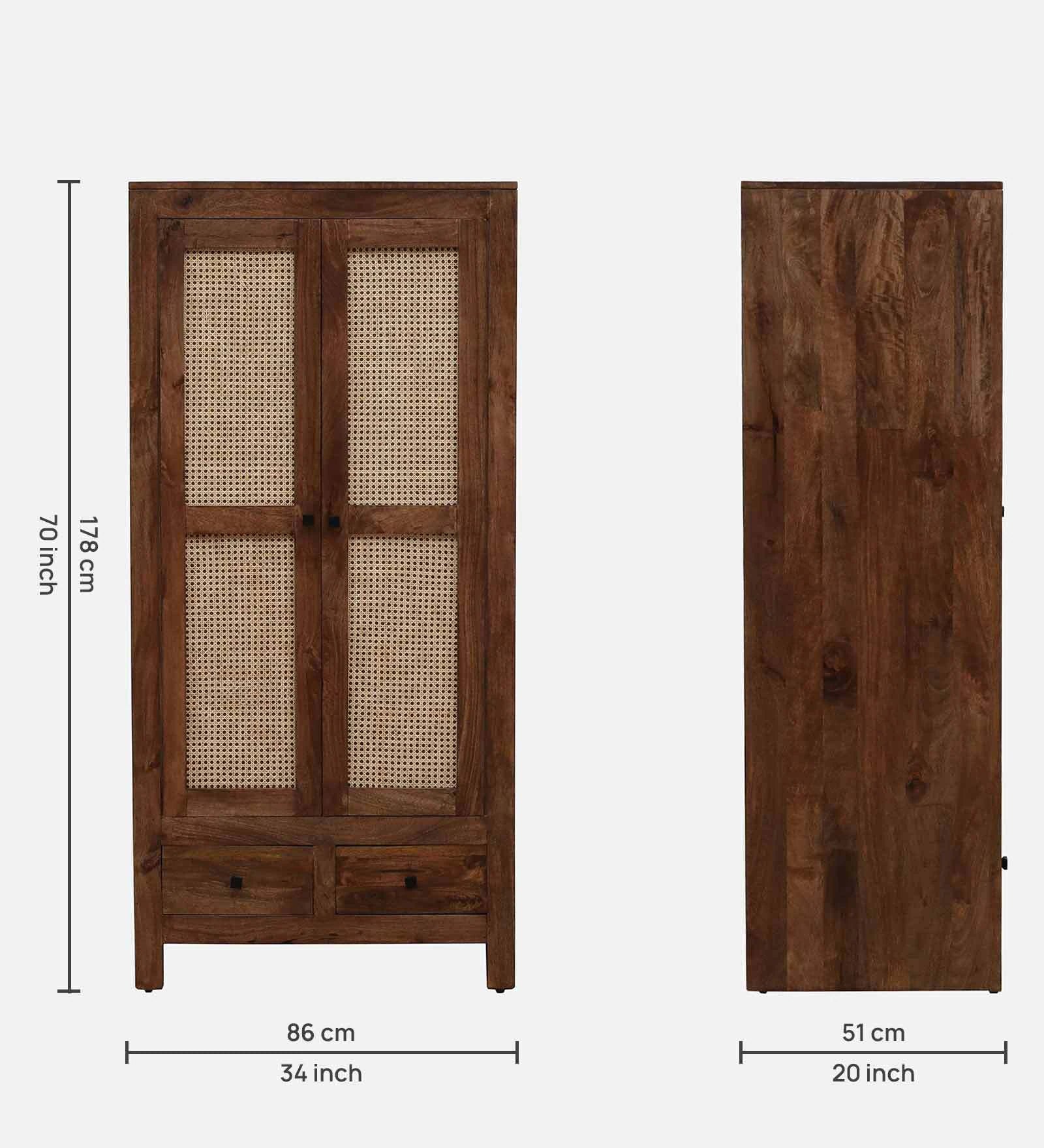 Mango Wood 2 Door Wardrobe In Rustic Teak Finish With Drawer