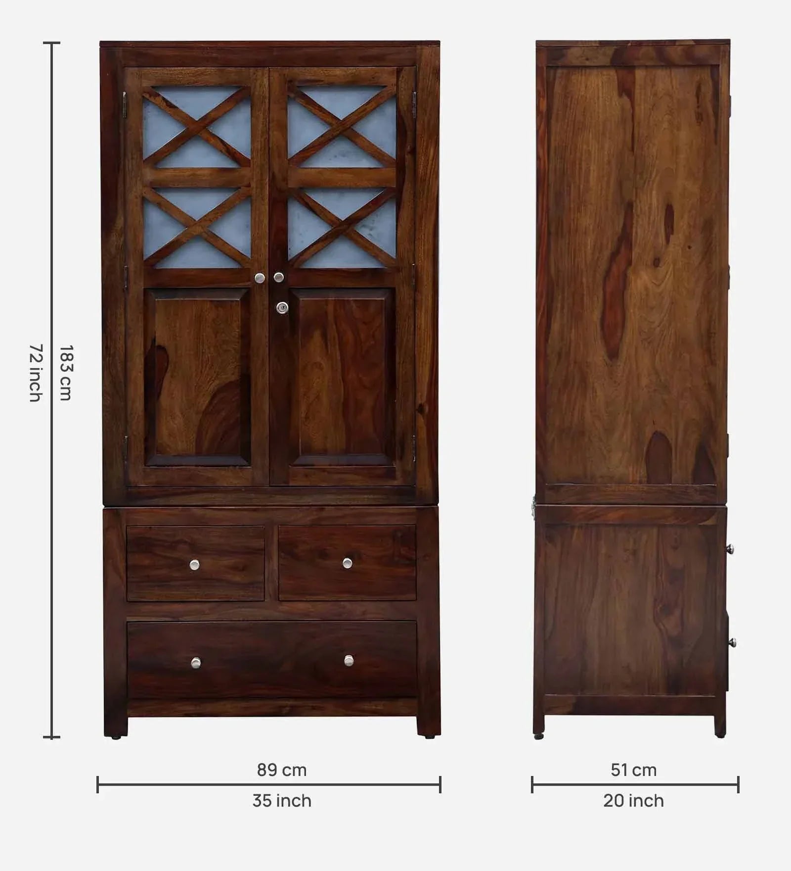 Sheesham Wood 2 Door Wardrobe In Scratch Resistant Provincial Teak Finish With Drawer
