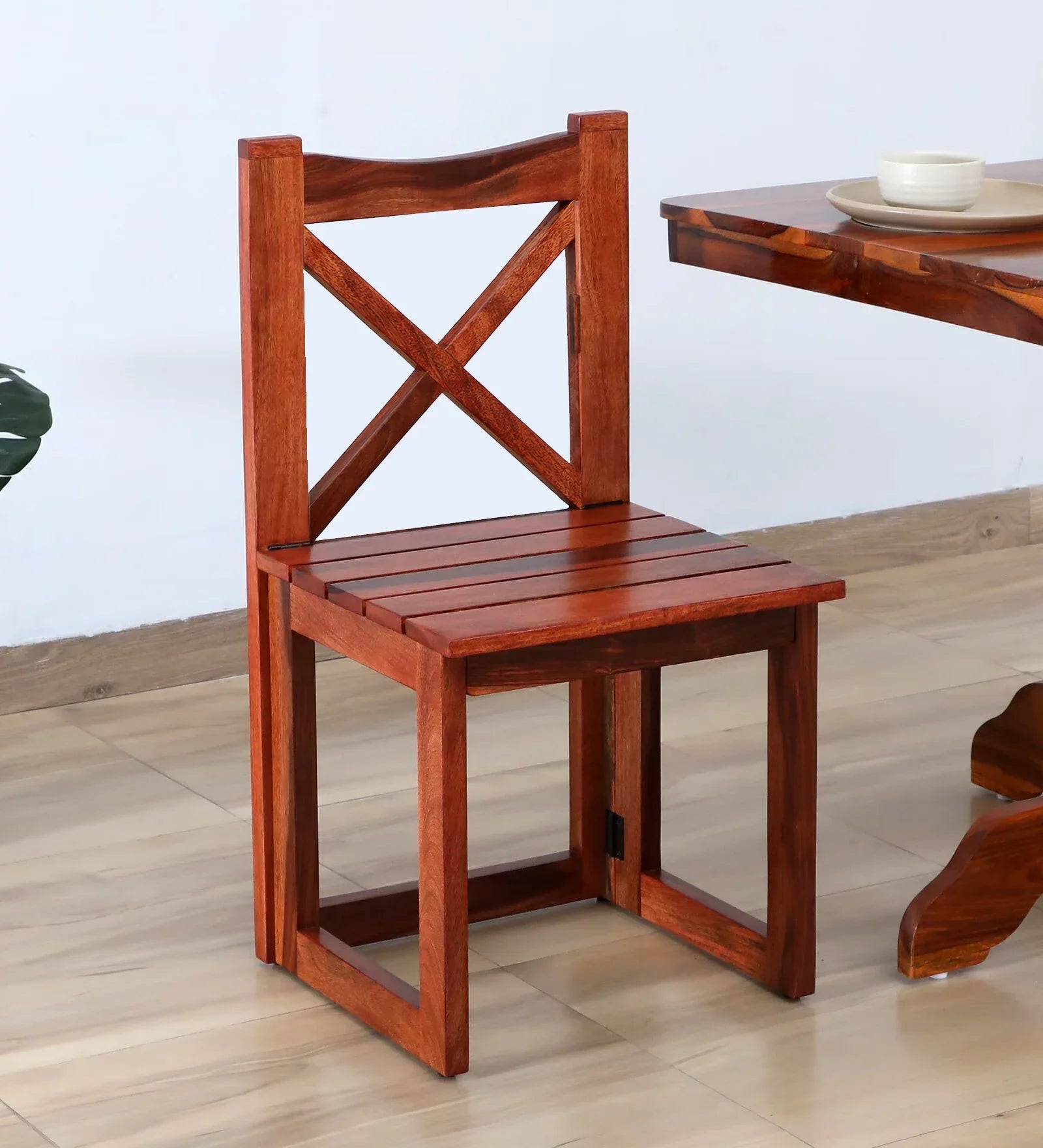 Sheesham Wood Folding Chair In Honey Oak Finish (Set Of 2)