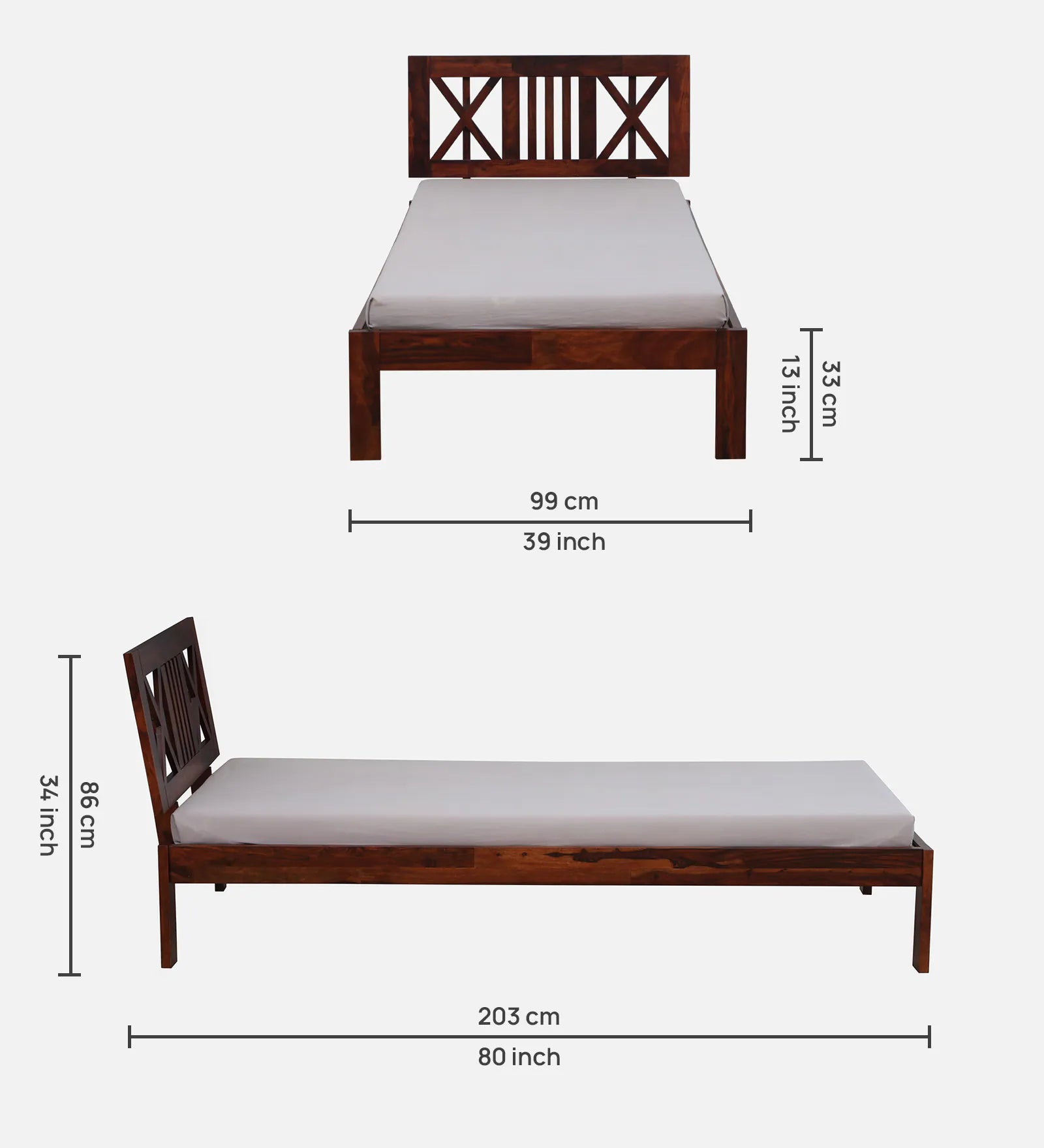 Recommended Mattress Size:- 78 L x 36 W Inch