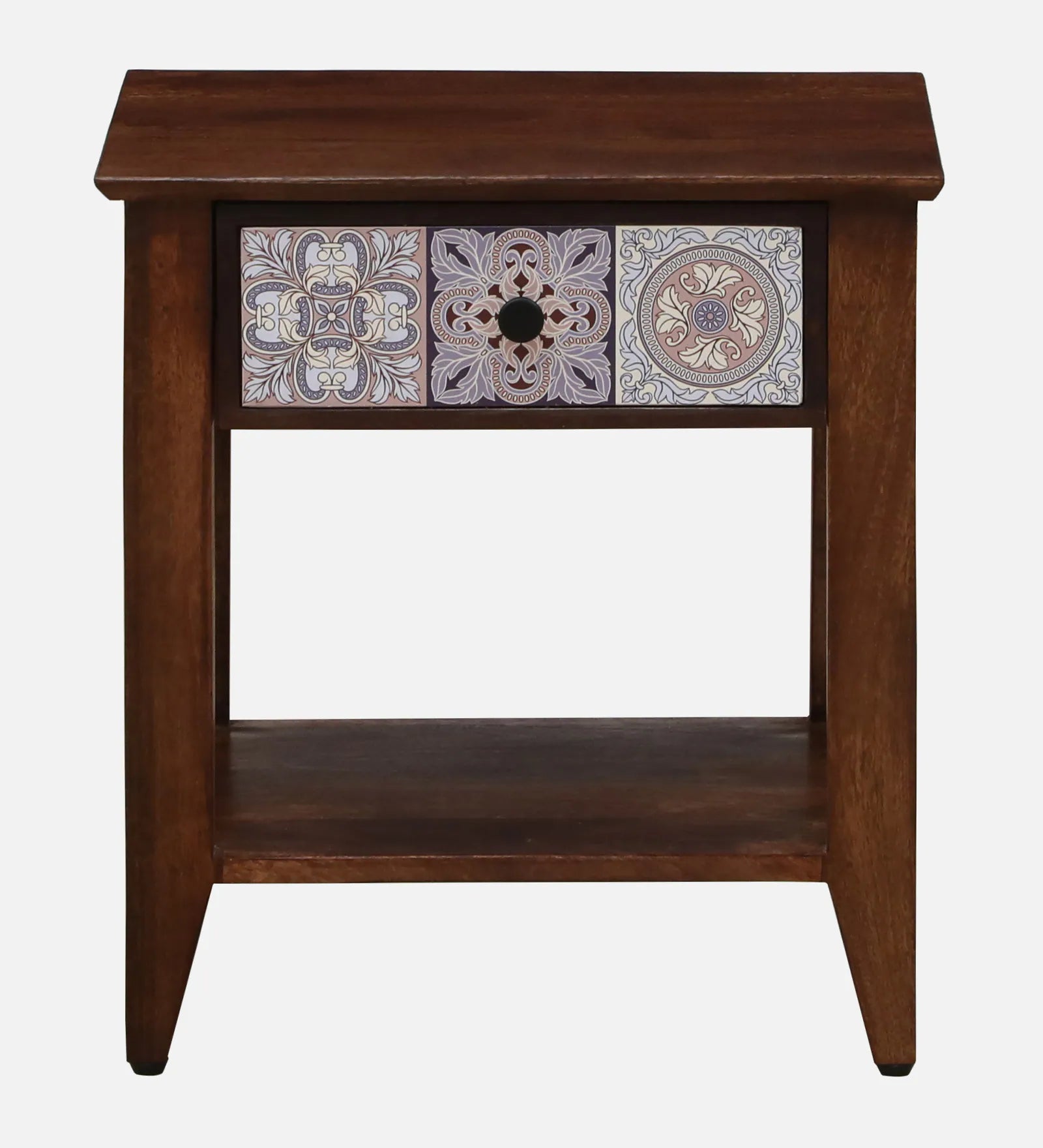 Zellige Solid Wood End Table In Tubbaq Finish With Drawer